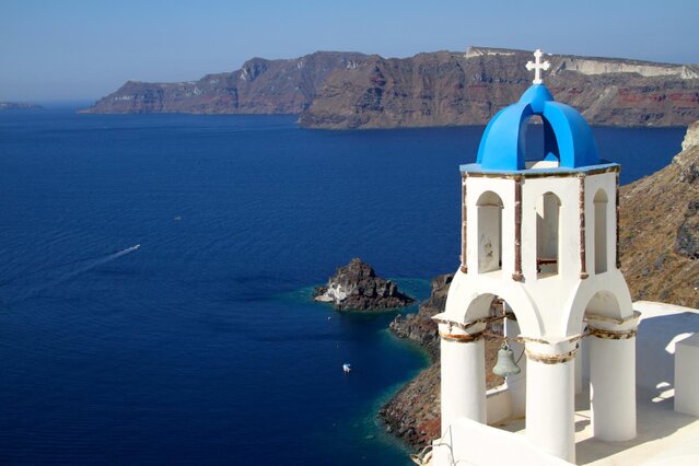Santorini, officially Thira, is a Greek island in the southern Aegean Sea, about 200 km (120 mi) southeast from the mainland. It is the largest island of a small, circular archipelago formed by the Santorini caldera.