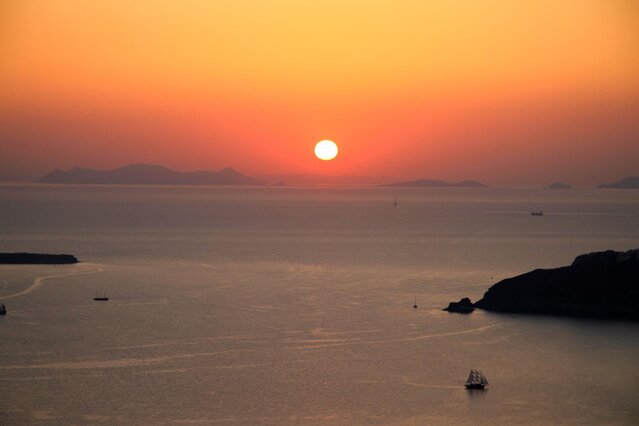 Santorini, officially Thira, is a Greek island in the southern Aegean Sea, about 200 km (120 mi) southeast from the mainland. It is the largest island of a small, circular archipelago formed by the Santorini caldera.